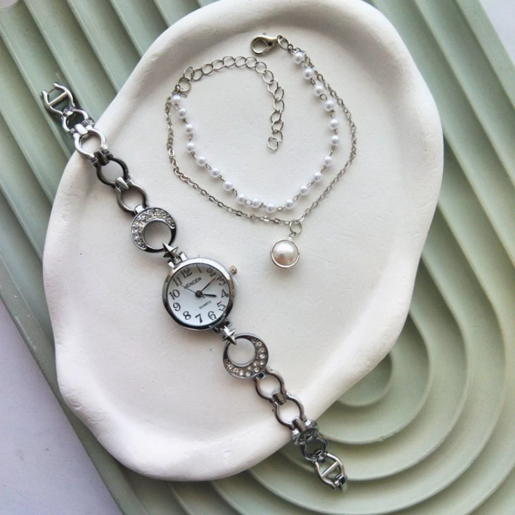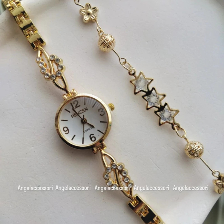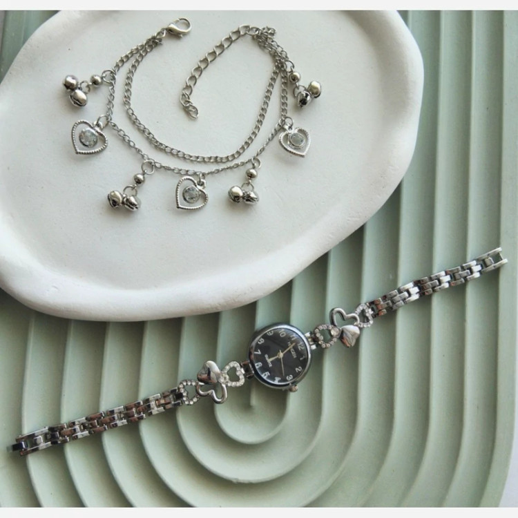 این ست شامل یک ساعت مچی بسیار شیک و مینیمال و یک دستبند با طرحهای و شیک هست که مناسب همه استایل ها مخصوصا مینیمال پسند ها و کسایی که دو. مچ ظریفی دارن هست .آبکاری بالا و درجه یک .تنوع در طرح هاشون اون هارو به یکی از اکسسوری های پرطرفدار بین خوش استایل ها کرده