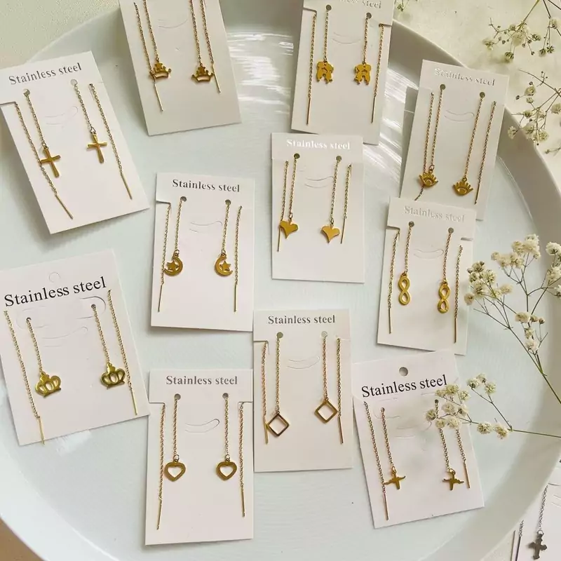 گوشواره بخیه استیل رنگ ثابت وضدحساسیت در رنگ طلایی و نقره ای در طرح های گوناگون گوشواره بخیه رو میشه ب ده ها روش آویز کرد
