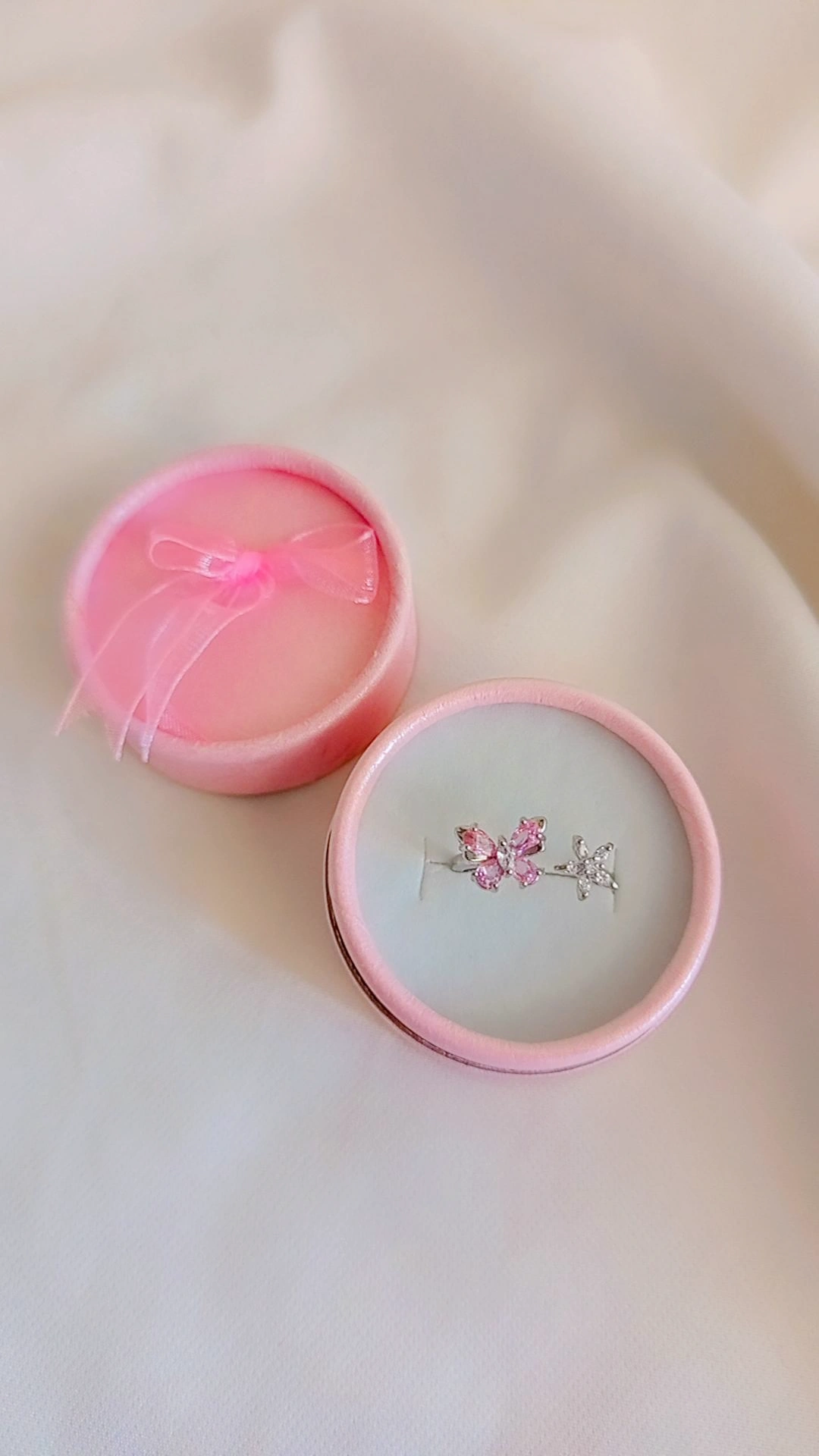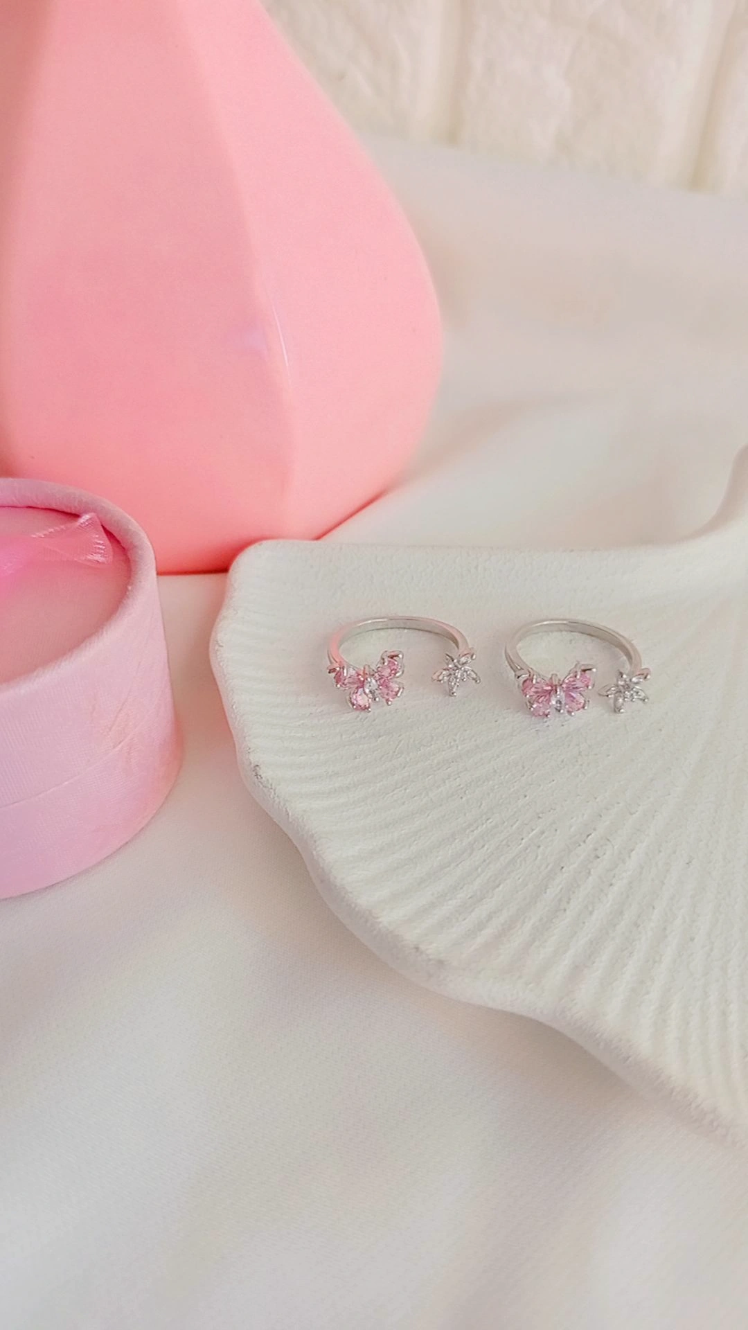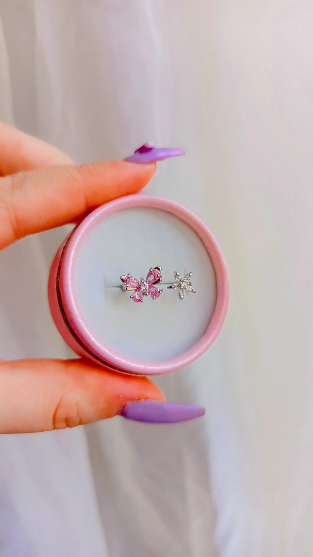 انگشتر جواهری پروانه نگین صورتی فری سایز همون انگشتری که دل هر دختری و میبره قابل سفارش با جا انگشتری صورتی🩷