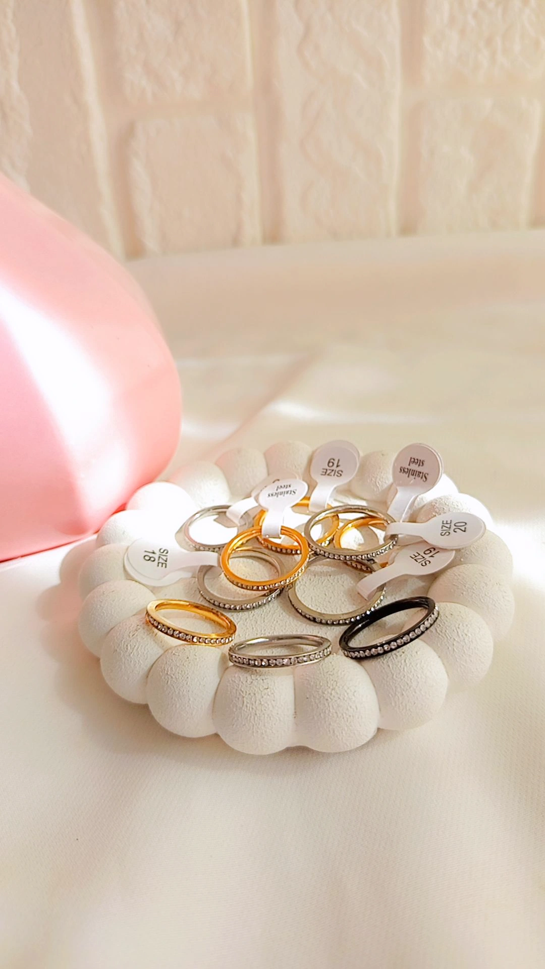 رینگ دور نگین رنگ نقرهای جنس استیل رنگ ثابت دارای سایز از ۵تا۹ مناسب همه انگشت ها و قابل استفاده نیم انگشت و پشت حلقه ها