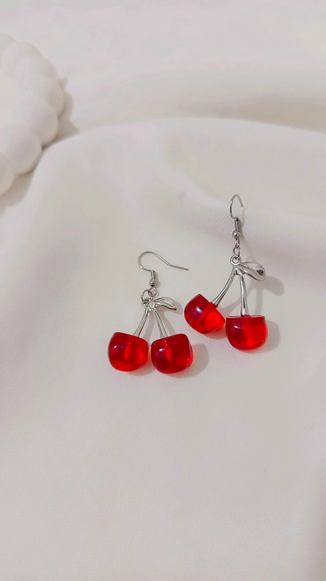 گوشواره آلبالو خوشرنگ و زیبا. قفل عصایی استیل و رنگ ثابت 🫴 پلاک استیل مراقبتی 🤌 خیلی شیک و جذاب هر دختری عاشقش میشه