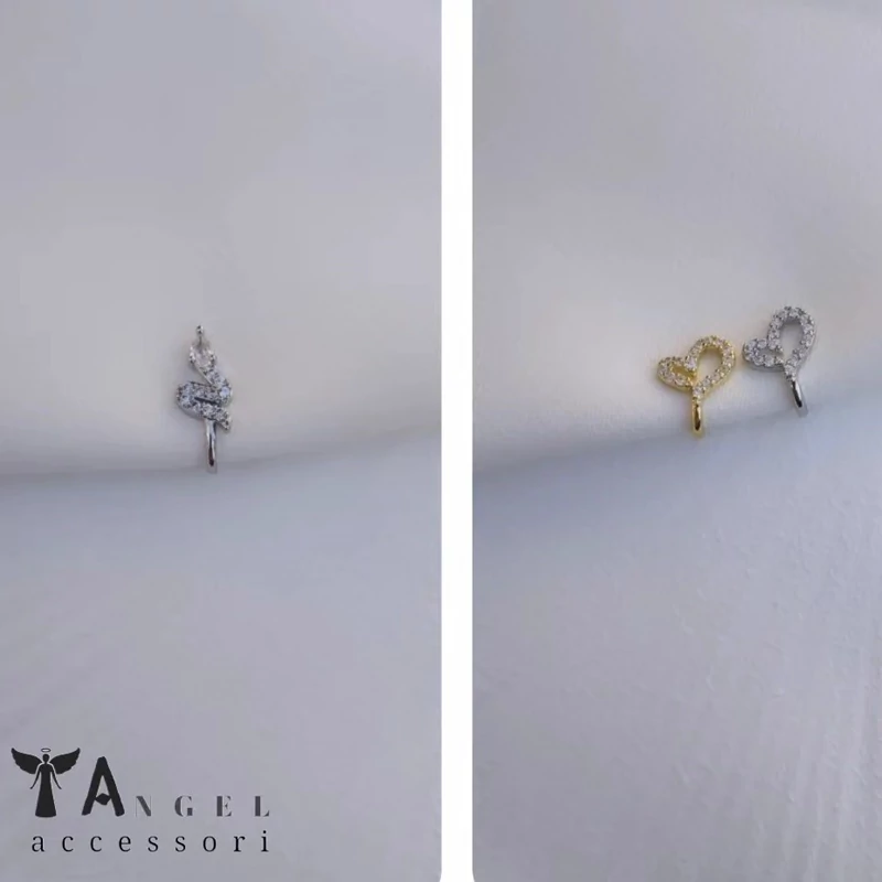 پیرسینگ فیک برای بینی و لاله گوش قرار میگیره بدون نیاز ب سوراخ با دست دو ثانیه ای راحت وصل میشه و با دست محکمش میکنید خیلی شیک و ظریف نگین کاری درجه یک جنس استیل در رنگ های نقره ای و طلایی خیلی شیک در طرح های مختلف برای موجودی طرحها چت بدید ممنون