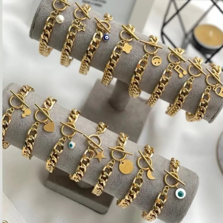 دستبند های کارتیر قفل تی جنس استیل دررنگ های نقره ای و طلایی اسپورت رنگ ثابت میتونید همراه با آویز سفارش بدید داخل توضیحات بنویسید