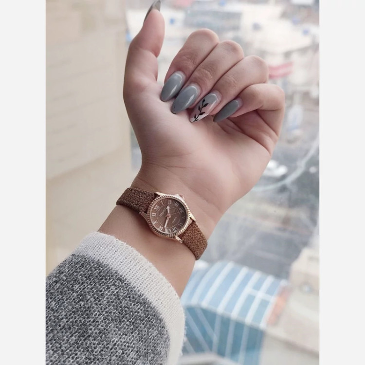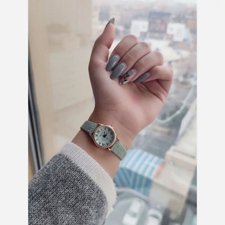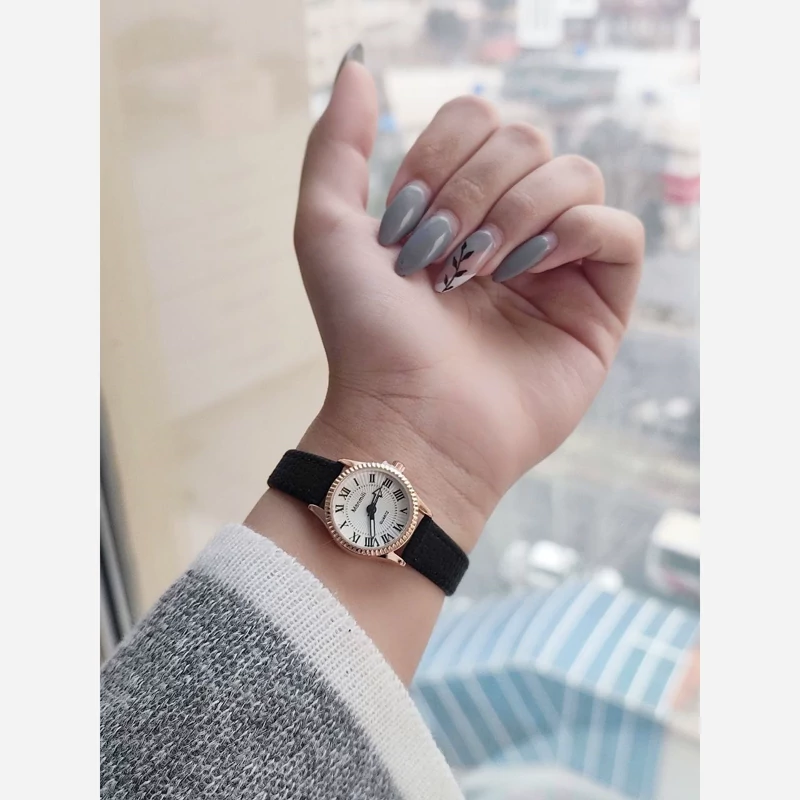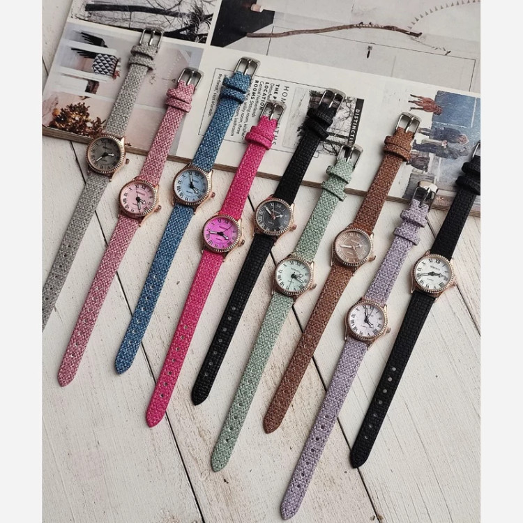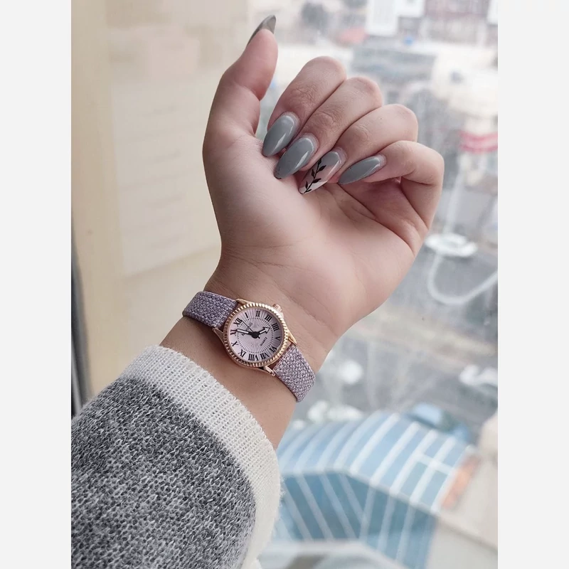 ساعت مینیمال بند چرم دور دوخت دخترانه