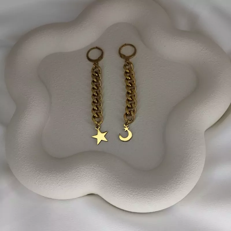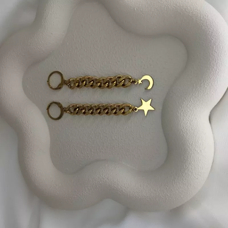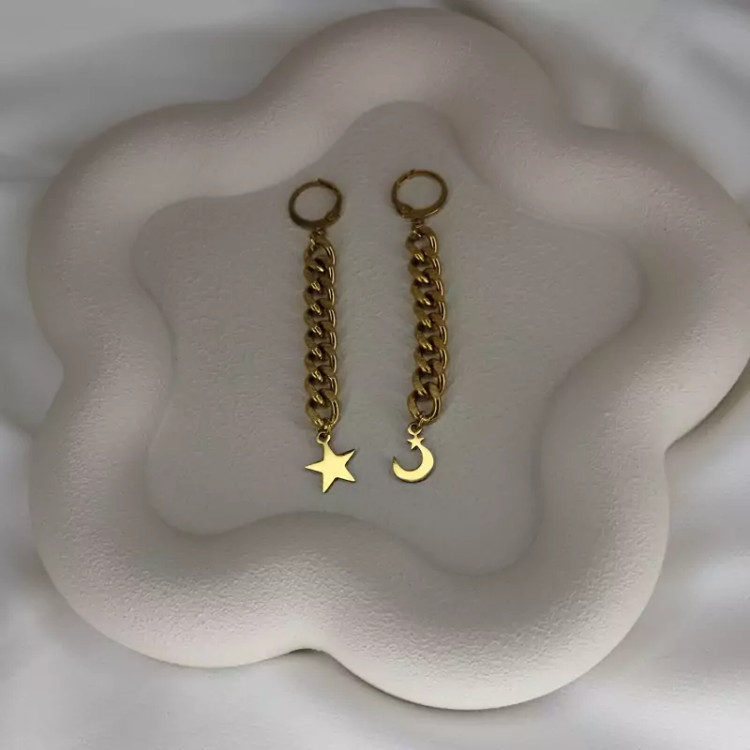 گوشواره کارتیر تراش دار پلاک ماه و ستاره استیل در دورنگ قابل سفارش بسیار شیک